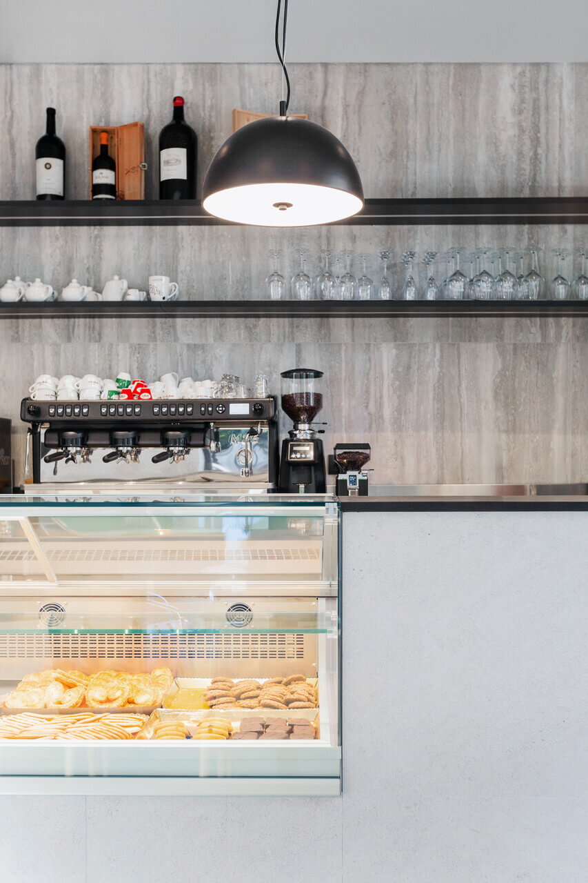 El bar Tabacalera tiene un diseño moderno y elegante, caracterizado por una paleta de colores basada en tonos fríos y neutros, con predominio de los grises y los tonos naturales. El ambiente transmite una sensación de refinamiento y contemporaneidad gracias al hábil uso de materiales que dan profundidad al espacio.
