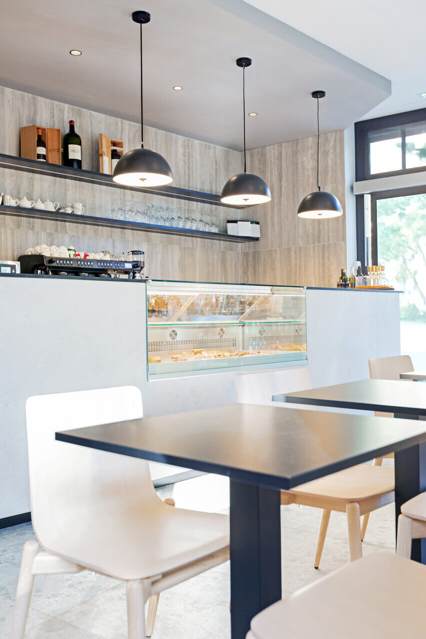 El restaurante refleja una estética sofisticada, con un equilibrio perfecto de minimalismo contemporáneo y detalles naturales. El uso cuidadoso de los materiales y la elección de colores fríos, con el uso cálido de la madera, crean un ambiente acogedor, distintivo y cordial.