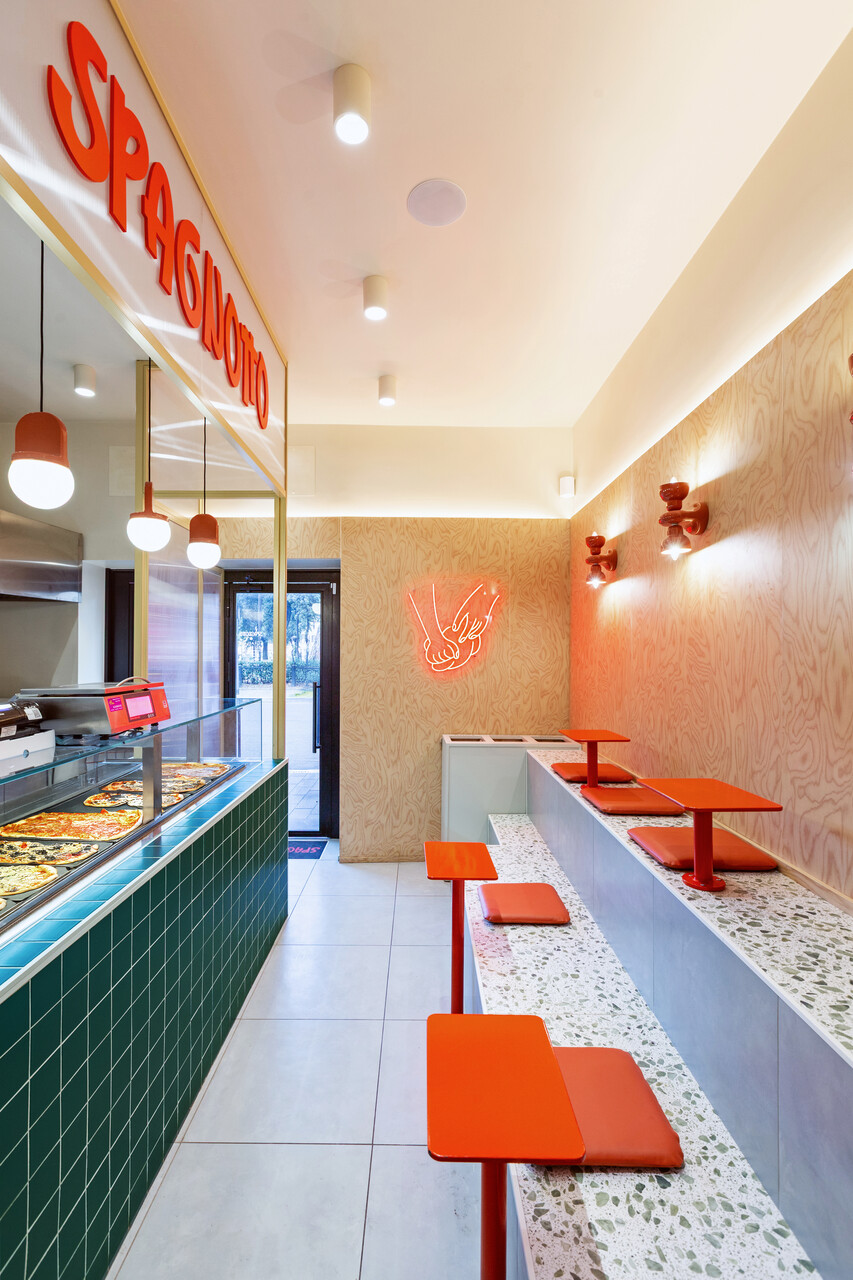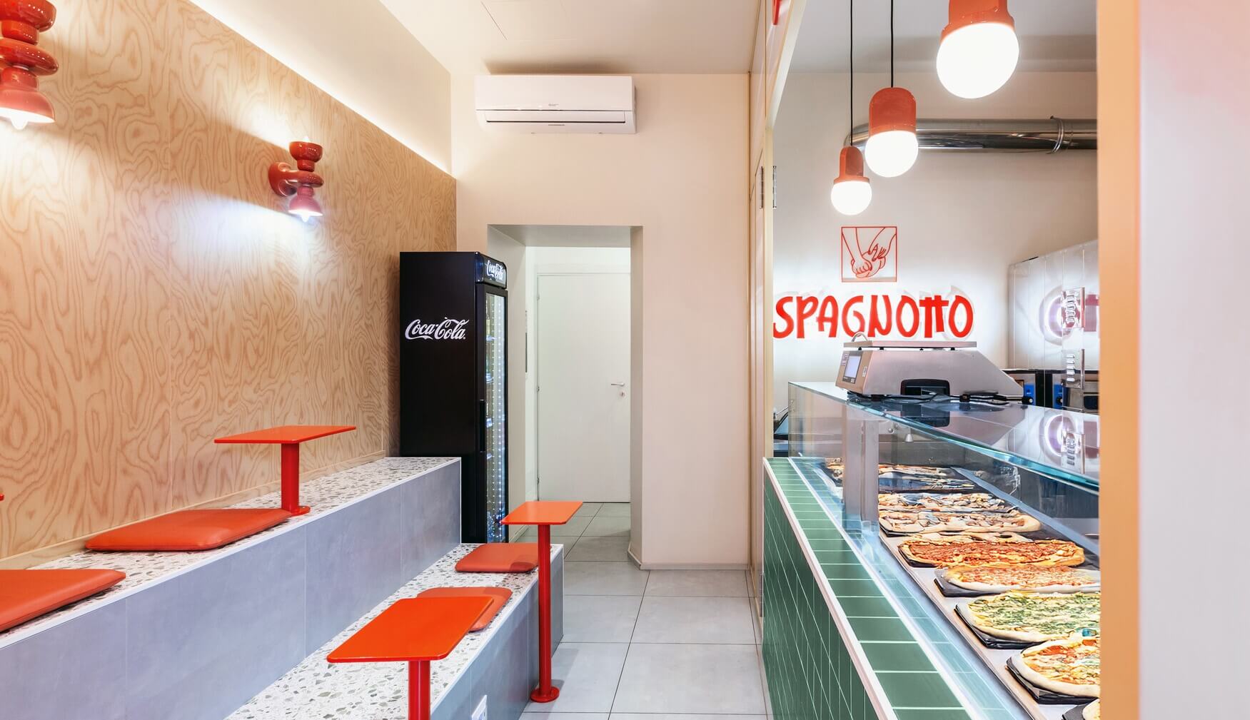 “Spagnotto amore per la pizza” è la nuova pizzeria al taglio di Re di Roma. Colori vibranti, ispirati ai sapori autentici italiani, e legno di betulla, caldo e dallo stile nordico, restituiscono uno stile contemporaneo, fresco e riconoscibile, pensato per esaltare l’esperienza semplice e genuina della pizza romana. Un concept diretto, colorato e tutto da assaporare.